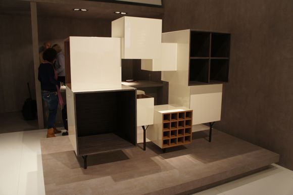 小さい箱を組み合わせるとこで形状が自由に変化するという収納「Free Port」