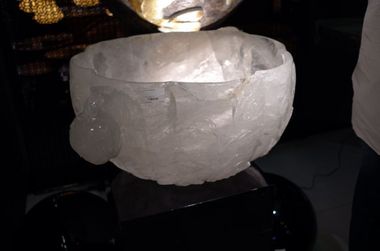 TITLE:リアル・クリスタルのボウル 2012年10月3日 先日のパリでちょっと変わった物を買ってきました。 なんと水晶の塊をくり抜いたボウルです。 本物のクリスタルなので、かなり高価です。 このボウルにパンチを入れて飲むと、クリスタル・パワーが体内に注入されるのかもしれません。 そのうちにショールームでのパーティーに登場させたいと思ってます。 異次元のパワー体験が待ってるかも・・・