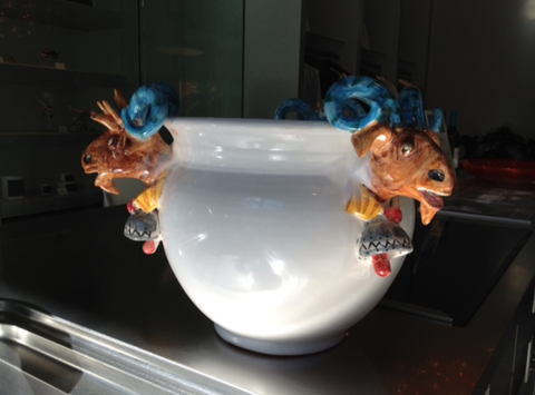 TITLE:あのアマルフィーから可愛い陶器の小物が到着しました。 2012年10月21日 映画にもなったイタリアのアマルフィーから現地の職人さんが一点一点手作りで作り上げたとてもカラフルな小物や花器が到着しました。 この工房は山羊のモチーフが得意です。 後ろにはこの工房で作られた花器も少し見えています。 山羊のモチーフを使った壷もあります。 何れも LUCE TOYOKITCHEN STYLE で展示してありますので、興味のある方はぜひご覧下さい。 写真は日の出のアマルフィー海岸です。
