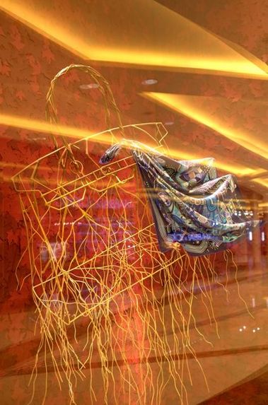 ワイヤーで形とったバーキンに新作のスカーフが絡み付いています。