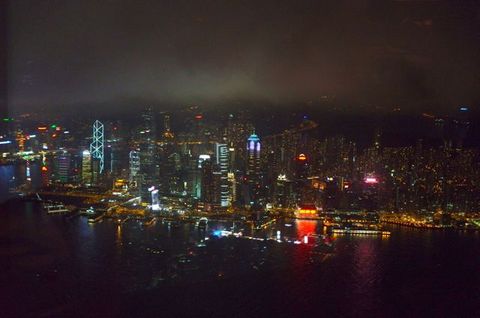 最上階に行かなくても、9階のホテル・エントランスからの香港島の夜景でも十分に綺麗でした。