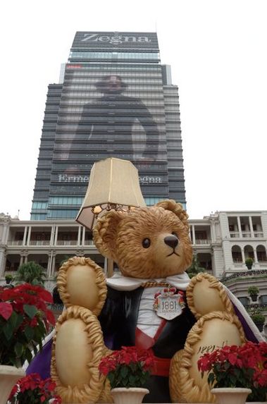 背景は「Ermenegildo Zegna」のビル全体を使った巨大な看板です。