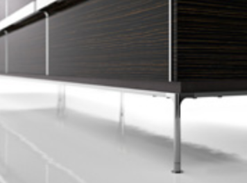 トーヨーキッチンのキッチンは全てのキャビネットが宙に浮いています。