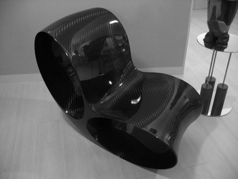 今はもう無くなってしまったのですが、ミラノのドーモの近くのビルの地下にアート家具の専門店がありました。ここでこの家具を見つけました。通常は材質がガラス繊維を固めて作られているのですが、これは素材がカーボン・ファイバーです。