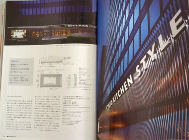 TITLE:「商業建築」に大阪ショールームが掲載されました 2012年12月10日 今月号の商店建築に大阪ショールームのファサード・デザィンが掲載されています。 微妙に形状の違うステンレスの棒を組み合わせて光の波紋と立体感を表現しています。 デザインは橋本夕起夫、名古屋本社ショールームのファサードと同じデザイナーです。