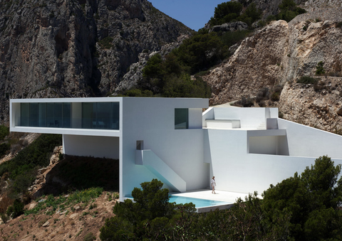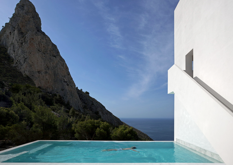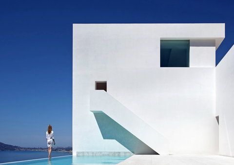 荒い岩肌と、白い壁、どこまでも青い空と海。