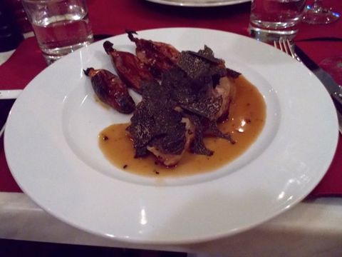 メインの鴨のロースト、トリフ掛け。
