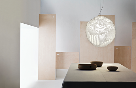 写真は FOSCARINI の宇宙服の縫製技術を使った布製の照明器具です。