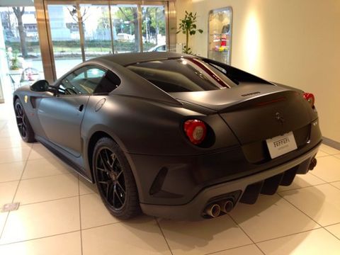 TITLE:フェラーリ「599 GTO」の艶消し塗装 2013年3月15日 名古屋のコーンズのショールームで2010年に599台限定で発売されていた 「599 GTO」を見つけました。 限定なので勿論レア、、おまけになんと艶消し塗装でした。 艶消しって、かなり迫力がありますね。 3,800万円で売りに出てました。 フェラーリって、なんか見てるとアドレナリンが出てくるような錯覚に襲われますね。 ついでですが、この車もかなり妖しい