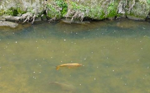 金色の大きな鯉が泳いでいました。