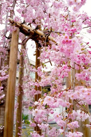 川の両岸は満開の桜。