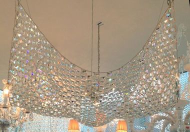 クリスタルを布状に天井から吊るし、さの中央に光源を置きます。