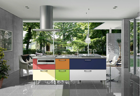 マルチカラーのキッチンですが、今年になってイタリアのキッチン・メーカーからも発売されました。このマルチカラーという概念がこれからのキッチン・デザインの一つの潮流になるかもしれませんね。