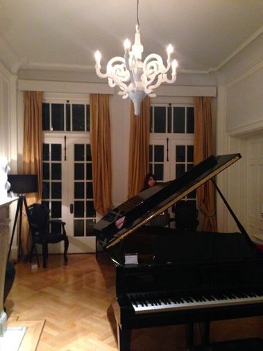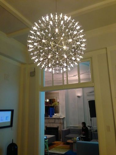 写真のビアノの上に吊るされているのはMoooiの「ペーパー・シャンデリア」です。