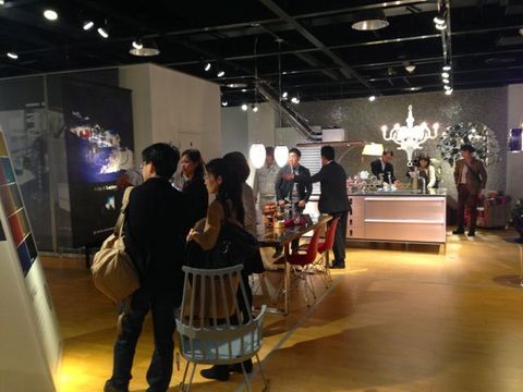 東京の展示セットと違うのは、シャンデリアの色が東京はピンクですが、名古屋は白です。