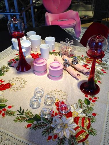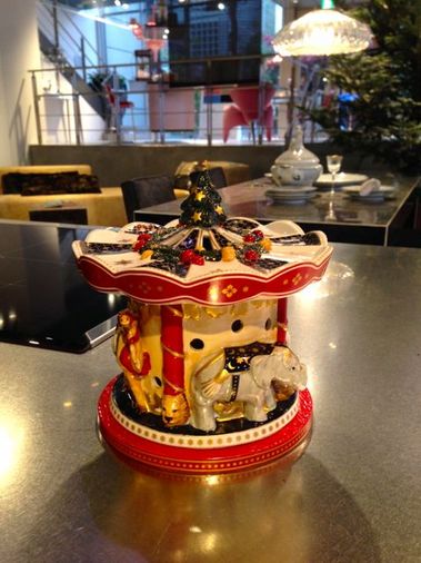 クリスマス・カラーに彩られたメリーゴーランドです。