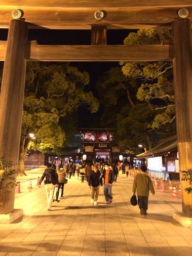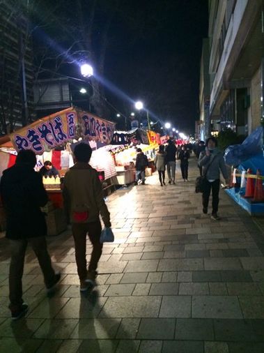 明治神宮に続く表参道には朝の5時というのにもう屋台はずらりと並んでいます。
