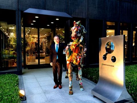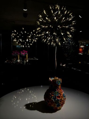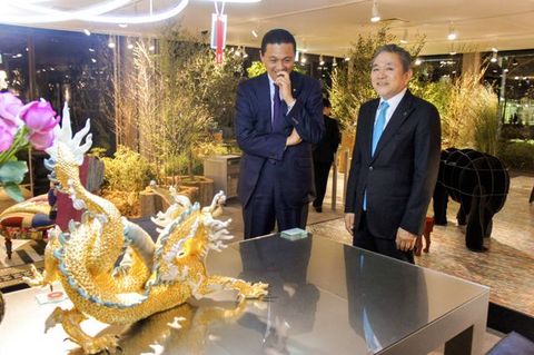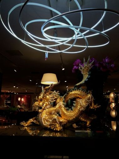 新ショールームのシンボル、リヤドロの黄金の登り龍と照明の新製品「フラフープ