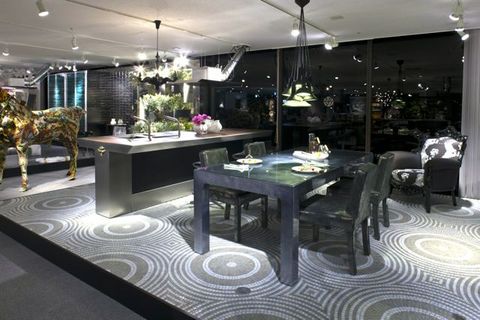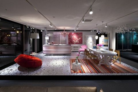 各々のステージは実際の部屋の大きさを想定して、その中にLDK空間を再現してあるので、キッチンと各家具の距離感や照明とのコーディネーションも実感して戴けます。