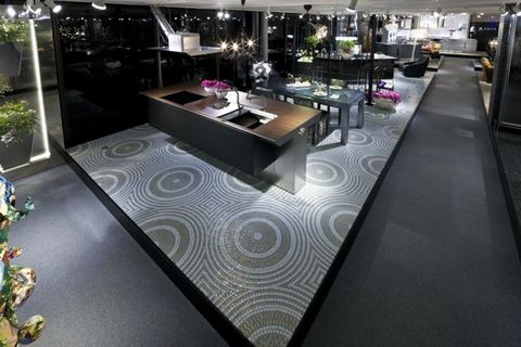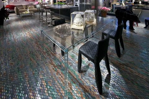 日本の住宅の床といえば木質系のフローリングが一般的ですが、素材感がチープなものが多く、これが日本の住宅のインテリアを粗悪なものにしている一因の一つだと思っています。こういったガラス・モザイクを貼ることでインテリアの質感が上がり、より豊かなものになっていくのではないかと思っています。
