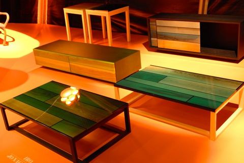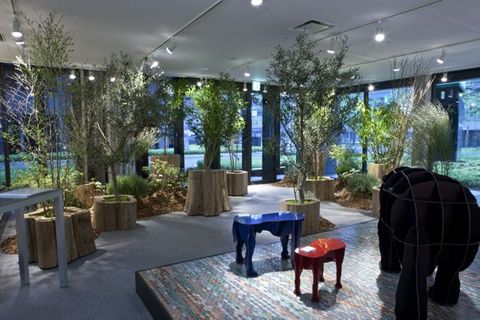 その森のテープルの前にはアパレル・メーカーが企画したという珍しい家具「Wait & See」