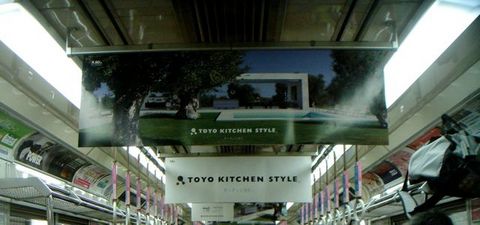 御堂筋線の1車両の中吊り広告と壁面をTOYO KITCHEN STYLEの広告で埋め尽くすというものです。