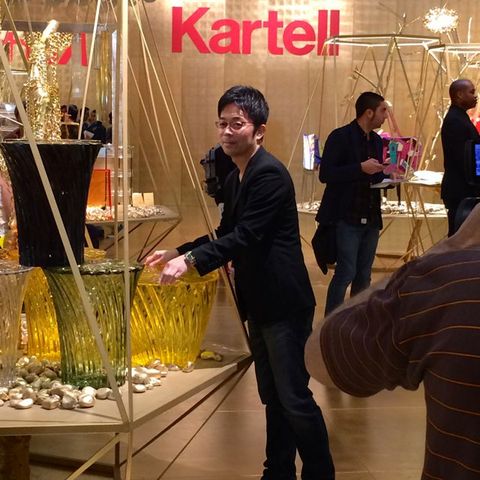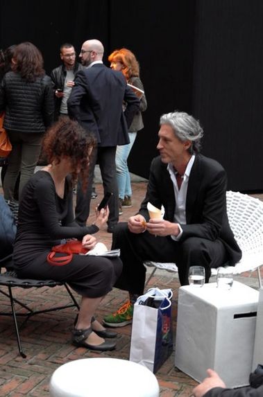 中庭で取材を受けているマルセル・ワンダーズ、、凄いデザイナーです。