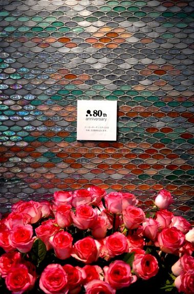 エントランスを入ると、TOYO KITCHEN STYLE 80周年を記念して80本のバラ「イブ・ピアジェ」