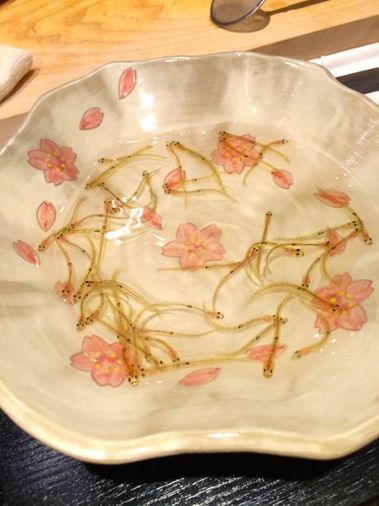 先々週の話ですが、福岡で呼子のイカと、春の風物詩「博多の白魚」を戴きました。