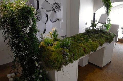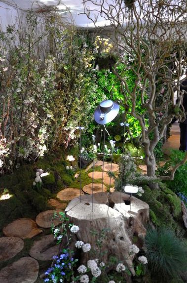 まず2階に上がると、テープルとその周囲に森をイメージしたディスプレーがされていました。
