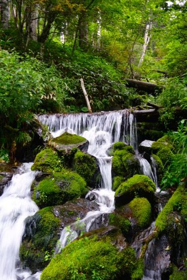 山から落ちてくる川に小さな滝がいくつも見えてきます。