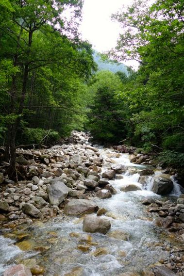 横尾を過ぎて暫く歩くと道は本格的な山道になってきます。