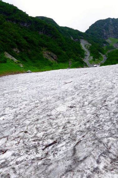 途中にこんなに大きな雪渓が残っていました。