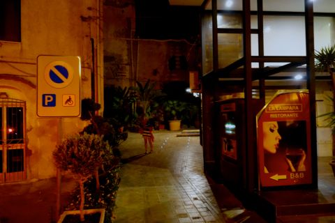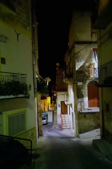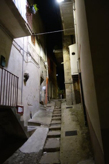 街の中の路地を更に登って行くと、ドライバーがこれ以上は登れないので歩いてレストランまで行ってくれと言う、確かにこんな道では車は登れない。昨年プーリアで山の麓に降ろされて、道に迷った記憶が一瞬頭をよぎりました。でも、まあ行くしかないので車を降りて登り始めました。廻りには人っ子一人いない。こんな所に果たしてレストランはあるのでしょうか?
