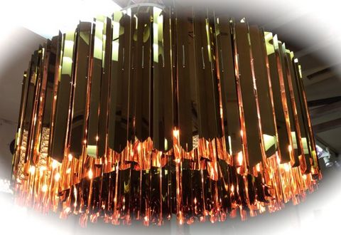 こんなメタリックなゴールドのシャンデリアが1台だけ入荷しました