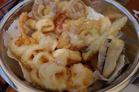 子イカのフリットとシチリアの白ワインをグラスで戴く。