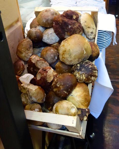 レストランの店頭にはポルチーニからオーボリ(たまご茸)が山積みにされています。