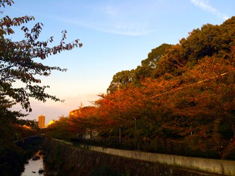 TITLE:秋ですね・・ 2014年10月20日 昨日、ようやく9月の強行スケジュールの疲れがちょっと癒えたので、久々に山崎川のジョギングに出かけました。 思ったより葉が色づいていました。 もう秋ですね。 今年の1年は本当にあっという間のような気がします。 久々のジョギングで、いつもの半分位で息が上がってしまってダウンです。