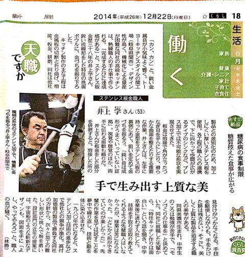 そのステンレウ職人の記事が先般中日新聞に掲載されました。