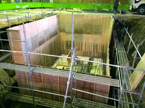 写真のコンバネで囲われた部分か全てコンクリートと鉄筋で満たされます。