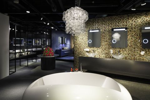 お風呂の上にはシャンデリア