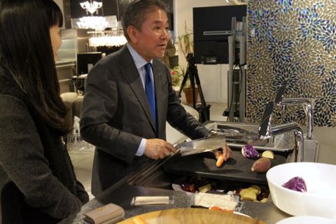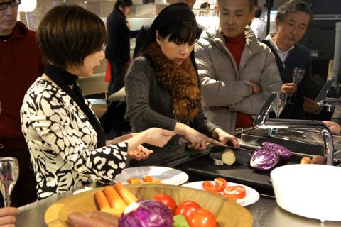 先週の土曜日13日、南青山ショールームでクリスマス・パーティーも兼ねて新製品のプレミアム包丁SABUROの発表会と実演会を行ないました。
