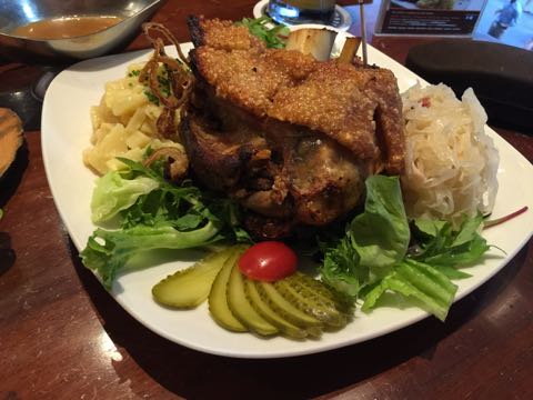 カフェの一つにこんな写真が載ってる店があったので、「唐揚げ」って早合点して入ってみるとなんとそこはなんとドイツ料理のカフェ。鳥だと思ってた料理は、よく見ると豚の唐揚げ。