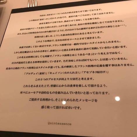カンテサンスのメニュー