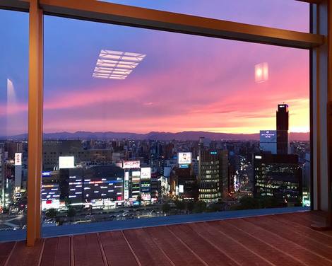 名古屋駅のJRタワーの料亭「浅田」の奥座敷から見た落日の養老山脈です。