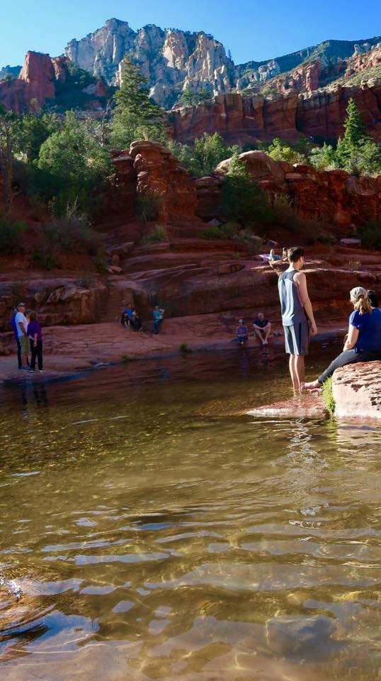 下の写真はセドナの街の入口付近に流れている川の写真ですが、写ってる人物から何か不思議な雰囲気を感じませんか?これは実際の写真ですが、どこか存在感が薄いというか、実写というより書き込まれたようなイメージを感じるのは私だけでしょうか?それとも、まるで渦巻く自然のパワーの中で時が止まってるようにも見えたりします。