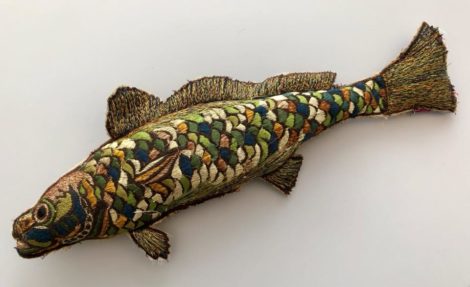 全部刺繍で背ビレと尾の金糸が可愛い。