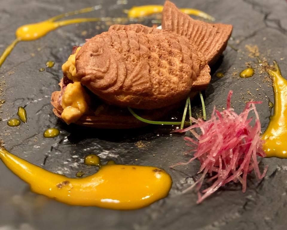 鯛焼きに挟まれた貝の身と雲丹が面白かった。