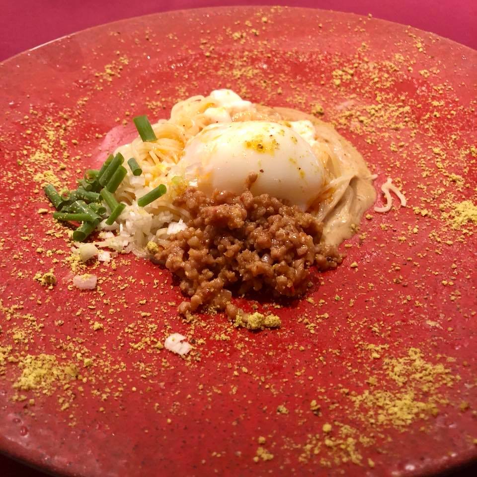 コースの最後は坦々麺、晁隆房出身のシェフなら晁隆房で出されてた「一口そば」を食べたかった。