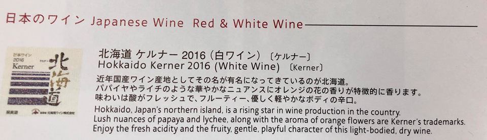 先日のヨーロッパ旅行の際のJALの機内で飲んだ北海道のワイン。